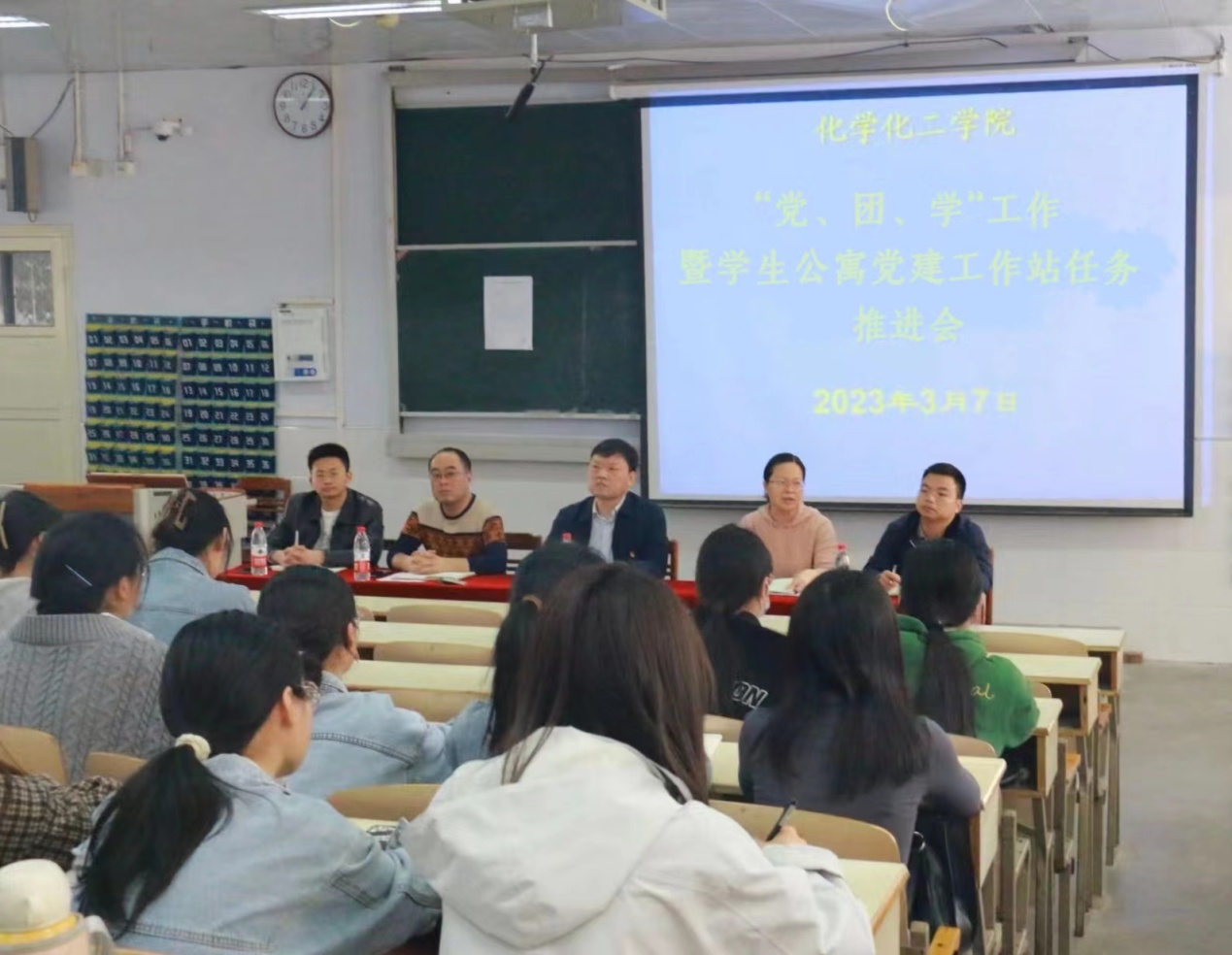 为深入学习宣传贯彻党的二十大精神,推进基层党建质量提升,切实抓好员工党建,以党建带团建发展,确保员工日常教育管理安全文明有序,保障人才培养质量平稳提高,3月7日,PA视讯官方网站在教六102专门召开2022-2023学年下学期“党、团、学暨员工公寓党建工作推进会”。公司党委书记郭鹏、副书记曲剧、专职组织员冷向宇,辅导员邓耀辉、严赫等出席大会,全体员工党员、员工干部参加会议。