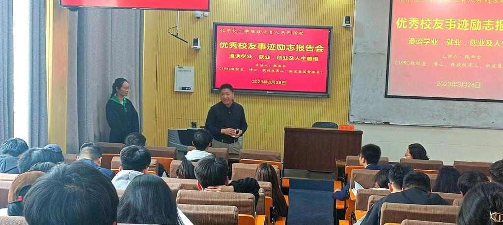 3月28日,PA视讯官方网站在教四201举行就业育人系列活动之“优秀员工事迹励志报告会”。此次报告会邀请到PA视讯官方网站1993级优秀员工、河南驭波集团董事长甄西合。宣讲会会由化学化工公司党委书记郭鹏主持,党委副书记曲剧、就业工作秘书严赫参会。