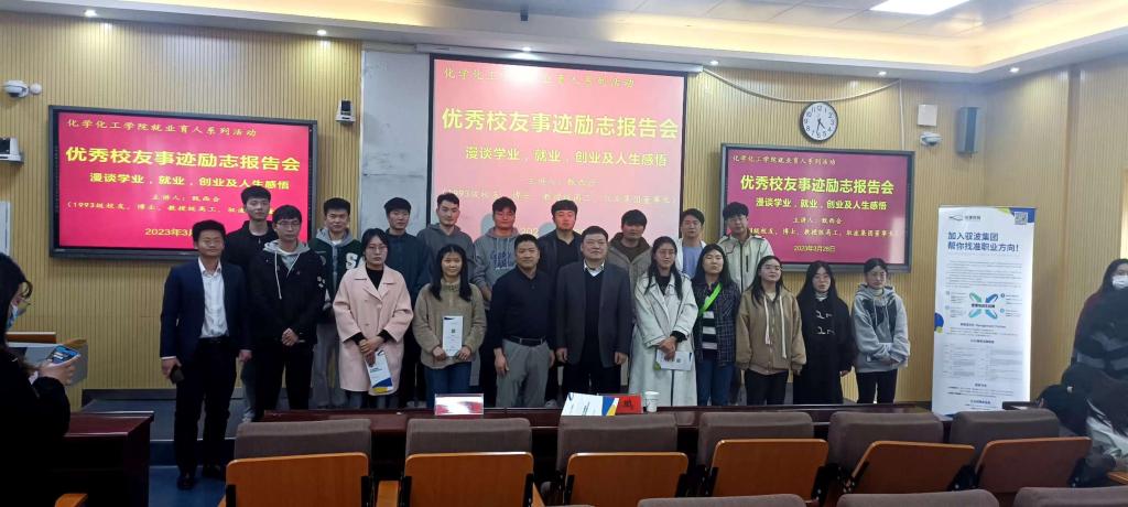 会上,甄西合先结合自身求学、就业、创业丰富经历,为同学们讲解了化学学科发展的相关知识前沿、就业创业前景,强调了化学学科的重要性以及社会经济发展需求、相关专业人才的缺乏。他鼓励同学们要在大学四年生活中注重打好专业知识坚固基础,在日常学习生活中要有奋斗目标、要谦虚谨慎、要努力奋斗。并对年轻人分享了三个经验:一是社会是有规则的,要积极适应社会;二是要提前了解自己热爱的职业并做好职业规划;三是坚持做好一件事力求有所成。