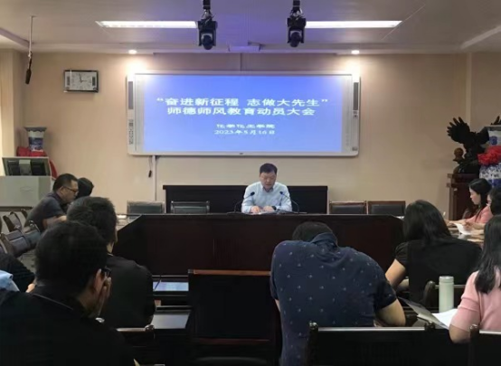 为进一步推动学习贯彻习近平新时代中国特色社会主义思想主题教育走深走实,落实立德树人根本任务,着力解决师德师风建设中的突出问题。5月16日下午,PA视讯官方网站在407会议室召开主题教育暨师德师风建设推进会。公司全体教师参加会议,会议由党委书记郭鹏主持。