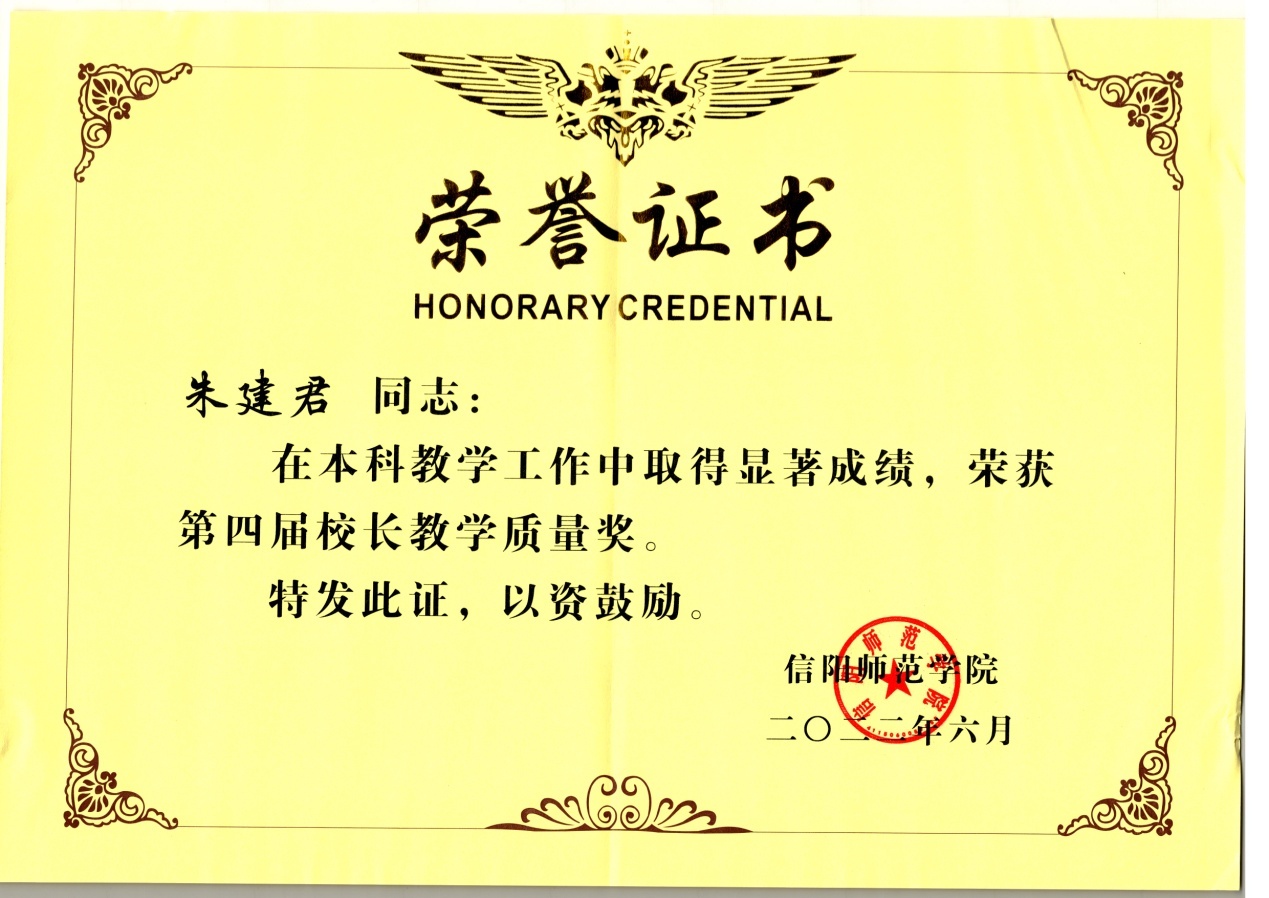 【喜讯】朱建君博士荣获第四届“董事长教学质量奖”