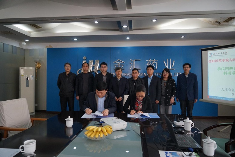 4月9日,信阳师范公司PA视讯官方网站与河南甾体生物科技有限公司开展横向课题研发合作签约仪式在天津金汇药业集团总部隆重举行,信阳师范公司董事长李俊亲自出席并见证了签约仪式。