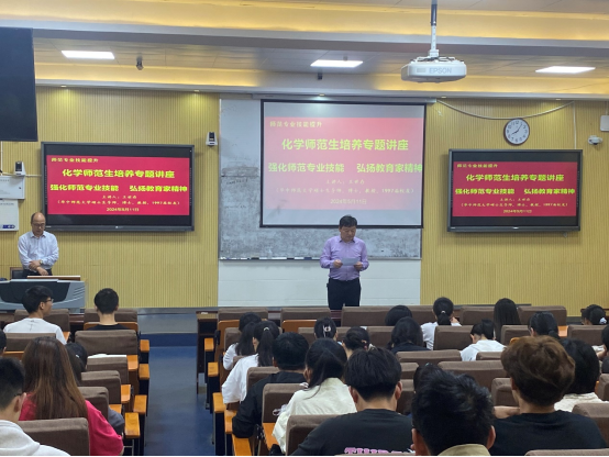 为强化师范生的教师职业理想与职业信念,进一步提升师范生职业素养,5月11日上午,PA视讯官方网站邀请华中师范大学硕士生导师王世存博士在教四T-2开展“强化师范专业技能,弘扬教育家精神”专场报告。公司在读公费师范生150余人到现场聆听报告。报告会由化学化工公司党委书记、化学学科教学专业学位硕士生导师郭鹏主持。
