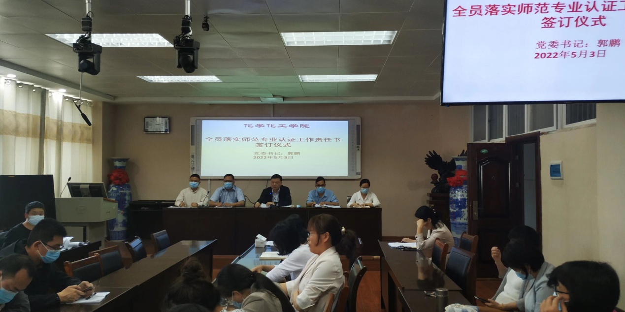为进一步推进落实化学师范专业认证工作各项目标任务,全面提高全体教师的责任意识,5月3日,在化学楼407会议室,PA视讯官方网站隆重举行了《全员落实师范专业认证工作任务责任状》签订仪式,公司全体教职员工集体参加,现场签订。公司党委书记郭鹏主持《责任状》签订仪式。