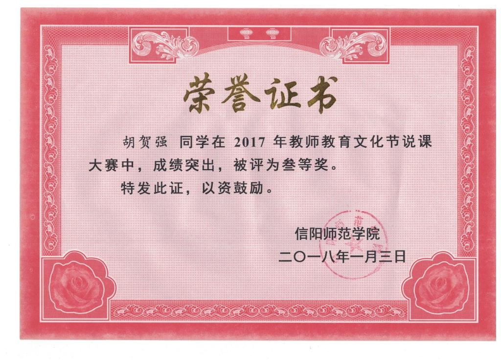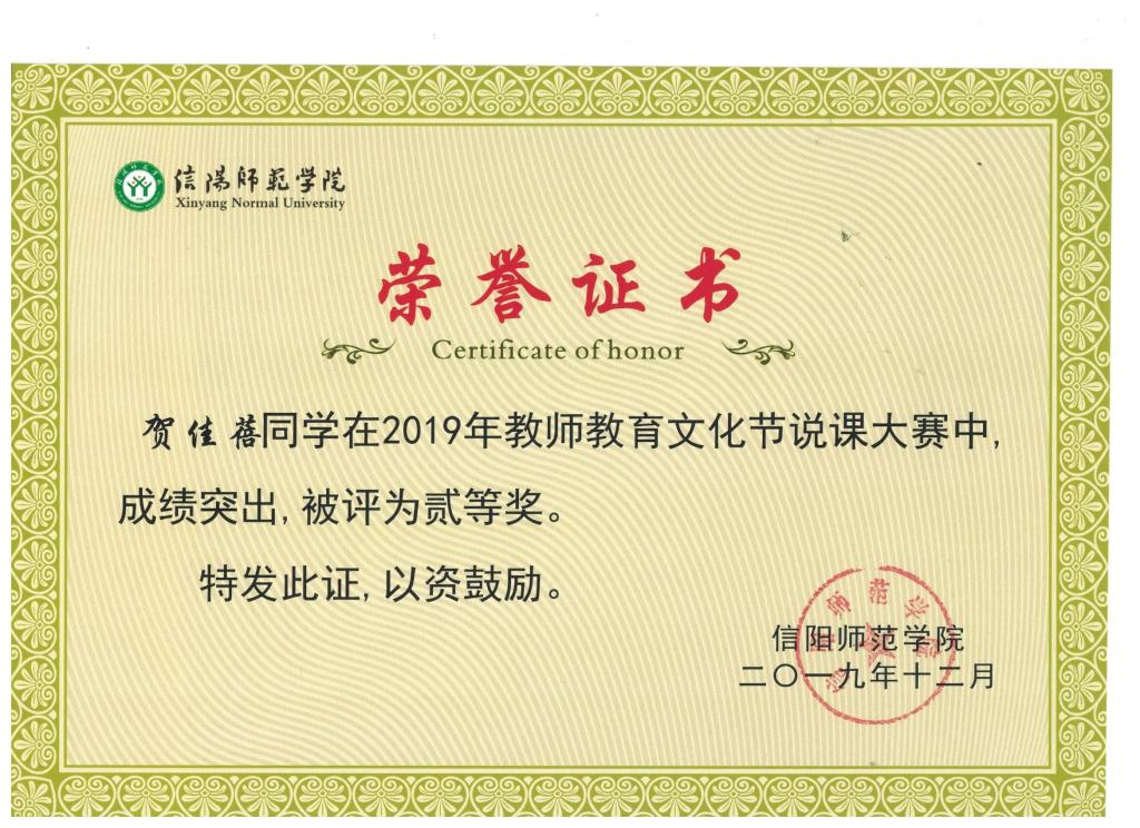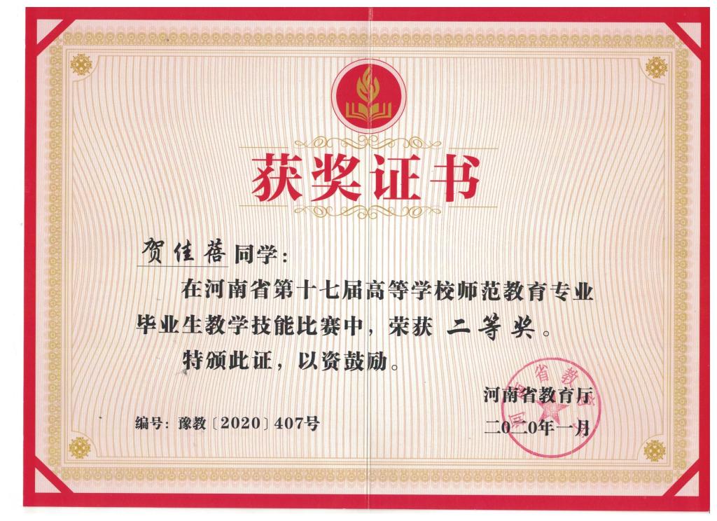 第十七届河南省师范教育专业的教学技能比赛二等奖——贺佳蓓